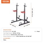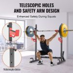 VEVOR Squat Stand Power Rack, Multi-Functional Barbell Rack with Hook, Weight Plate Storage Attachment, Adjustable Free Bench Press Stands, Max Load 600 Lbs Steel Exercise Squat Stand for Gym/Home Gym